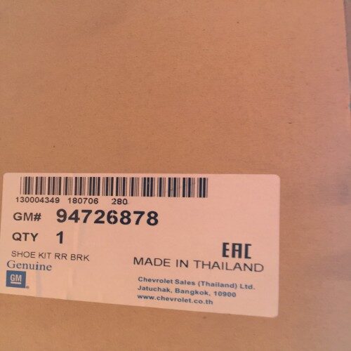 Guốc Phanh Sau / Má Phanh Sau 94726878 chính hãng, sử dụng trên các dòng xe Chevrolet Colorado 2013-2016, sản xuất bởi GM Thái Lan, cung cấp bởi Bkauto- phutunghanoi.vn